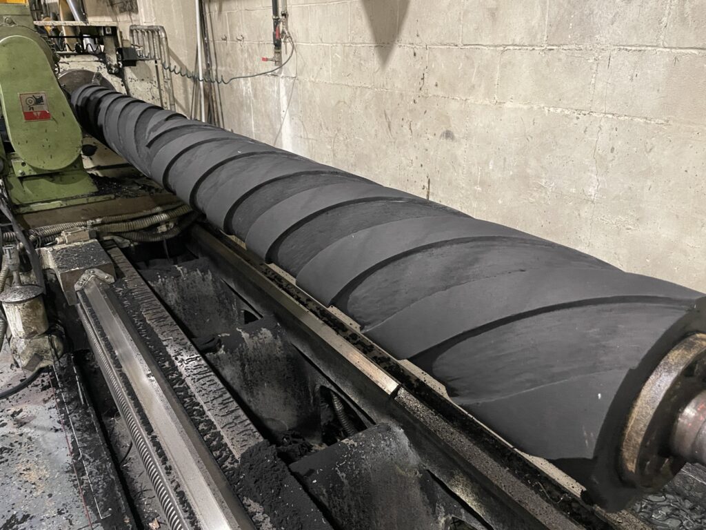 Ponemos a disposición de nuestros clientes todos nuestros medios, para adaptarnos a las necesidades especificas en cada caso. Esta vez un rectificado especial concéntrico en espiral de dos rodillos, que actúan conjuntamente, encajando uno sobre otro.